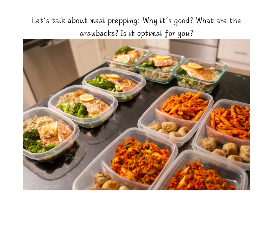 Well, to be honest some people do not have time to cook a week’s worth of food at one time. Some people do not have the storage containers or space available. And some people just refuse to eat leftovers (even if they’re not technically leftovers). Another issue with meal prepping, if whole meals are prepped, is that the options are set. Hold on. Is this a good thing or a bad thing? Didn’t I just say it helps up above? Yep. I did. However, some people don’t know what they feel like eating and knowing they don’t have a choice (even though they do, it’s just perceived as a control) causes them anxiety or stress. If you fall into any of these categories, meal prepping may not be right for you.